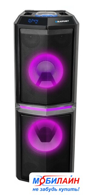 номинальная мощность 160 Вт, воспроизведение с USB, питание от сети и аккумулятора, BT 5.4, AUX, влагозащита IPX4, время работы: 12 ч.