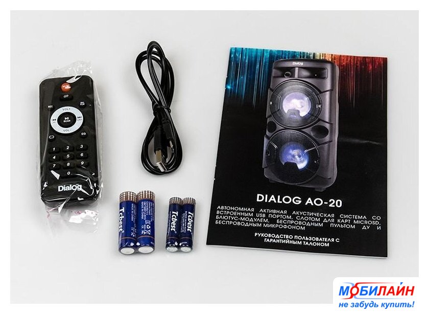 Комплектация | - пульт ДУ- батарейки для пульта ДУ (2xAAA)- беспроводной микрофон- батарейки для микрофона (2xAA)- кабель для зарядки- документация |