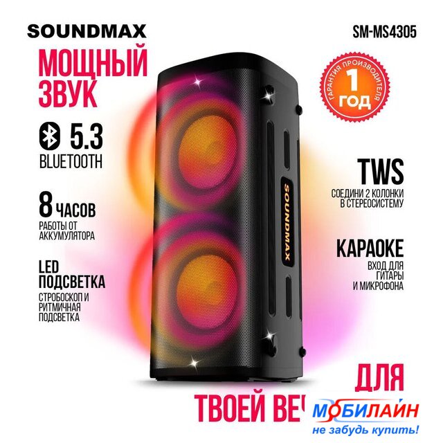 номинальная мощность 160 Вт, воспроизведение с USB/microSD, питание от сети и аккумулятора, BT, AUX, время работы: 8 ч.