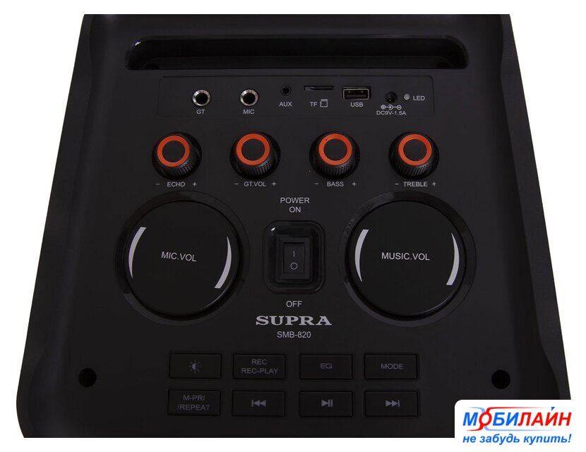 номинальная мощность 100 Вт, воспроизведение с USB/microSD, питание от сети и аккумулятора, BT, NFC, AUX