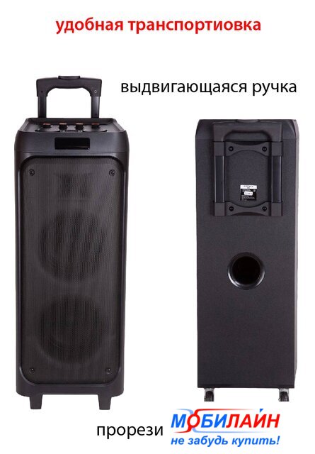 колонка для вечеринок, 80 Вт, питание от аккумулятора/от сети, карты памяти microSD, bluetooth, радио