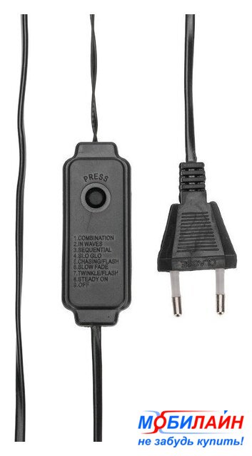 бахрома, для использования в помещении/на улице, длина 3 м, 90 ламп, питание от сети, свечение мерцающее, IP65, провод черный резиновый