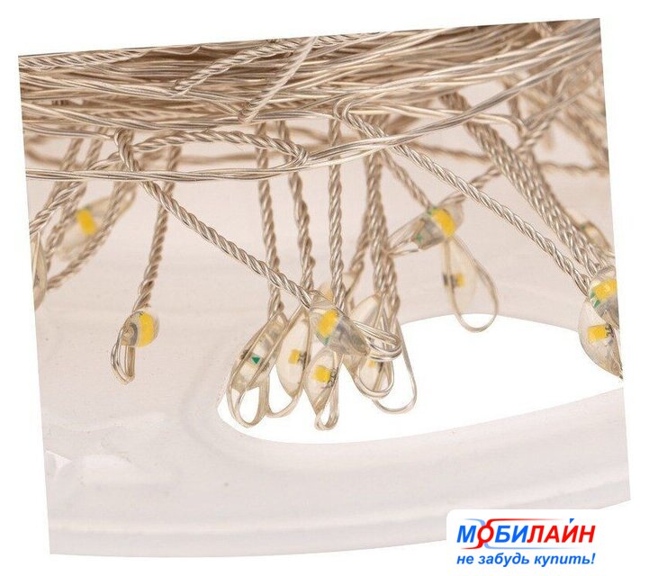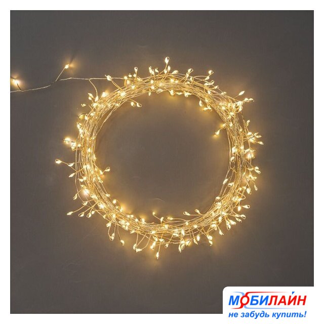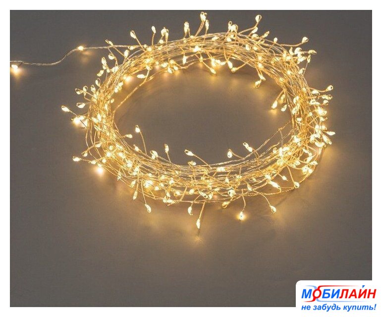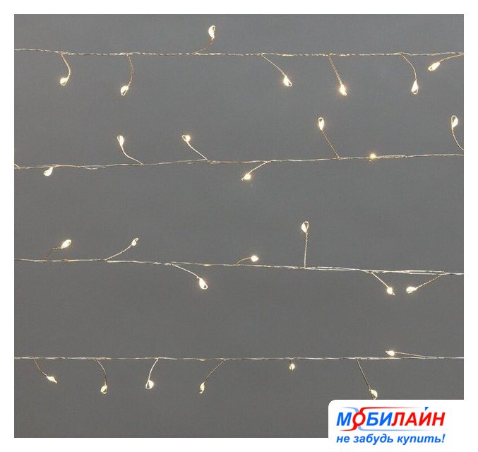 гирлянда, для использования в помещении/на улице, длина 10 м, 100 ламп, питание от сети, свечение мерцающее, IP65, провод черный резиновый