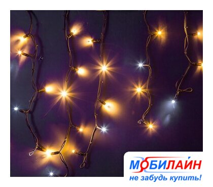 гирлянда, для использования в помещении/на улице, длина 10 м, 100 ламп, питание от сети, свечение мерцающее, IP65, провод черный резиновый