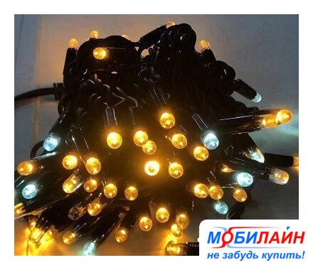 гирлянда, для использования в помещении/на улице, длина 10 м, 100 ламп, питание от сети, свечение мерцающее, IP65, провод черный резиновый