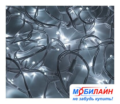 гирлянда, для использования в помещении/на улице, длина 10 м, 100 ламп, питание от сети, свечение мерцающее, IP65, провод черный резиновый