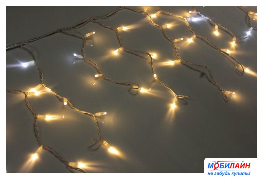 гирлянда, для использования в помещении/на улице, длина 10 м, 100 ламп, питание от сети, свечение мерцающее, IP65, провод черный резиновый