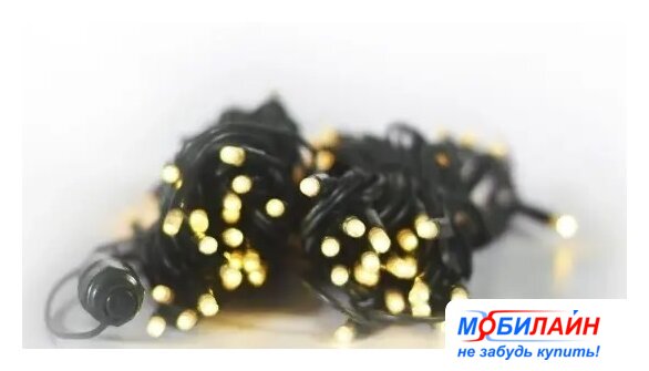 гирлянда, для использования в помещении/на улице, длина 10 м, 100 ламп, питание от сети, свечение мерцающее, IP65, провод черный резиновый